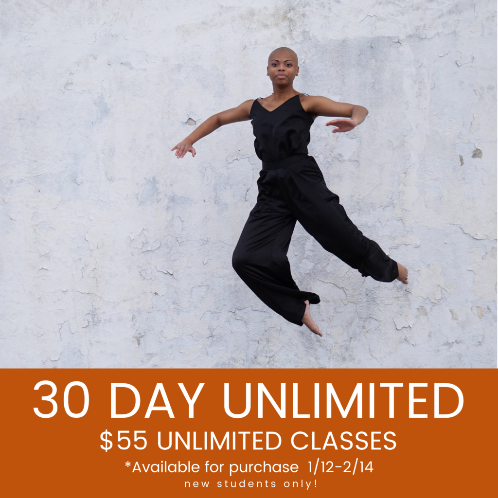 Available for use for 30 days from purchase date for new Dance Project students. Master classes excluded. (Available for purchase 1/13-2/14)